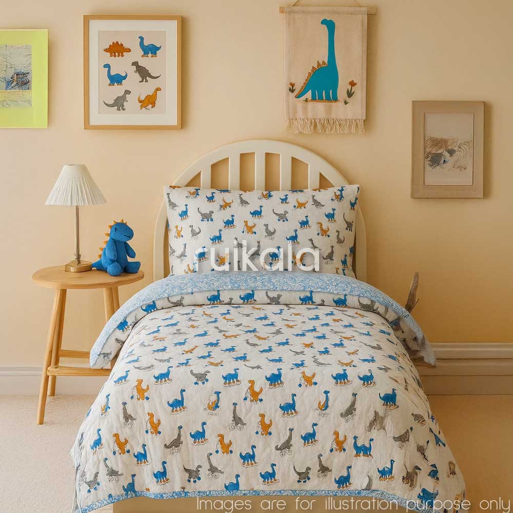 Handblocked mul cotton fabric adorns both sides, encasing a plush cotton filling that provides gentle warmth. Each layer is carefully hand-stitched with precision, ensuring exceptional durability and lasting comfort for delicate skin.
