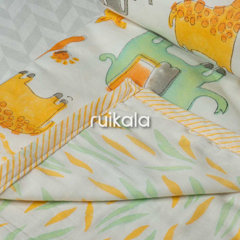 Expertly crafted Kid's Dohar featuring handblock mul cotton fabric on both sides with a soft flannel sheet sandwiched between layers for optimal comfort and warmth. These premium dohars showcase charming prints, making them perfect for your little one's delicate skin while providing the right balance of coziness and breathability.